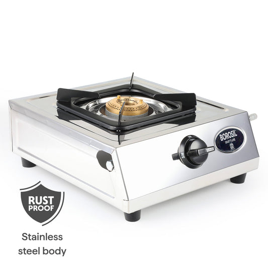 • Borosil Smart Flame Stainless Steel Single Burner Gas Stove