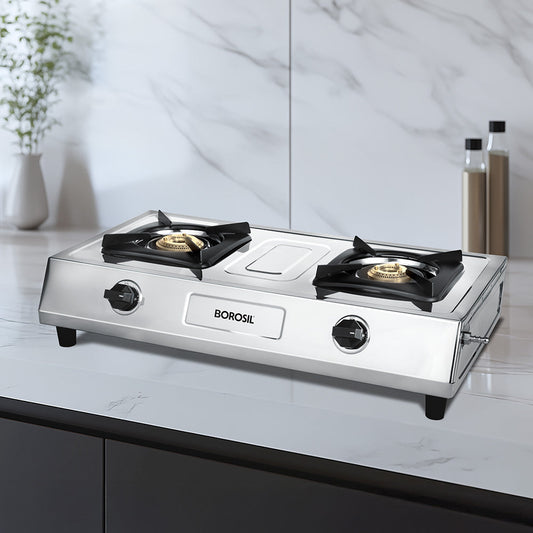 • Borosil Smart Flame Stainless Steel Gas Stove, 2 Burners