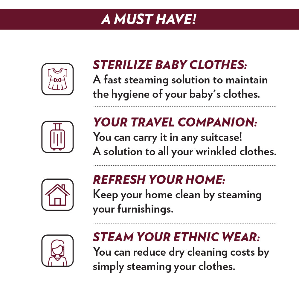 Discover the power and versatility of the Borosil Handheld Garment Steamer GS02. Its dry ironing function is perfect for silk, nylon, rayon, wool, and cotton, giving your clothes a fresh, pressed look without moisture. The ceramic coated soleplate ensures smooth gliding over any fabric, while the powerful 1600 W element guarantees continuous steam for efficient wrinkle removal. With two steam modes, high and economical, you can customize your steaming experience. The steamer's user-friendly features, including a detachable water tank, long power cord, and easy-to-use controls, make steaming a breeze. Enjoy the convenience of horizontal and vertical ironing, and take advantage of the included attachments for an enhanced steaming experience. Upgrade your ironing routine with the Borosil Handheld Garment Steamer GS02.