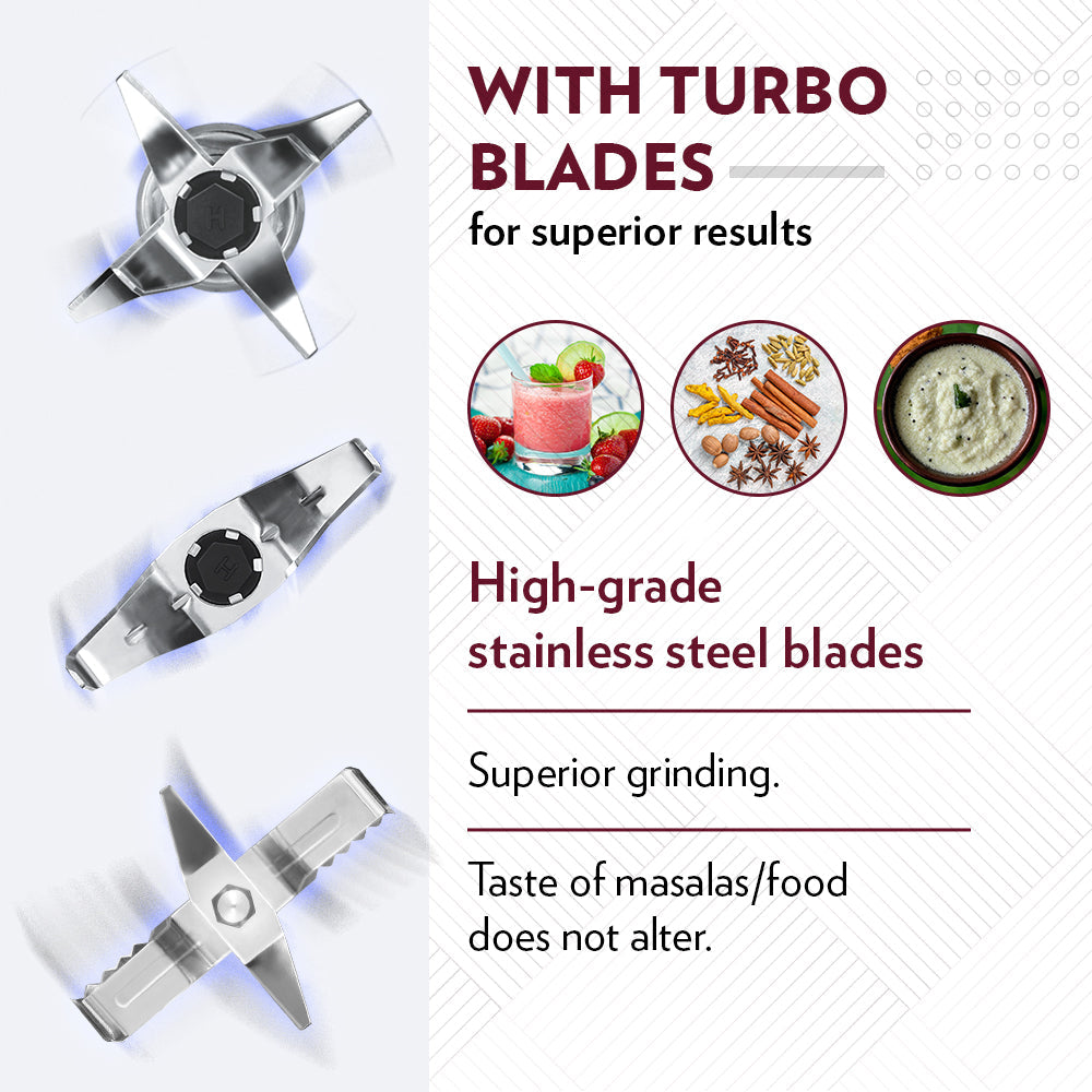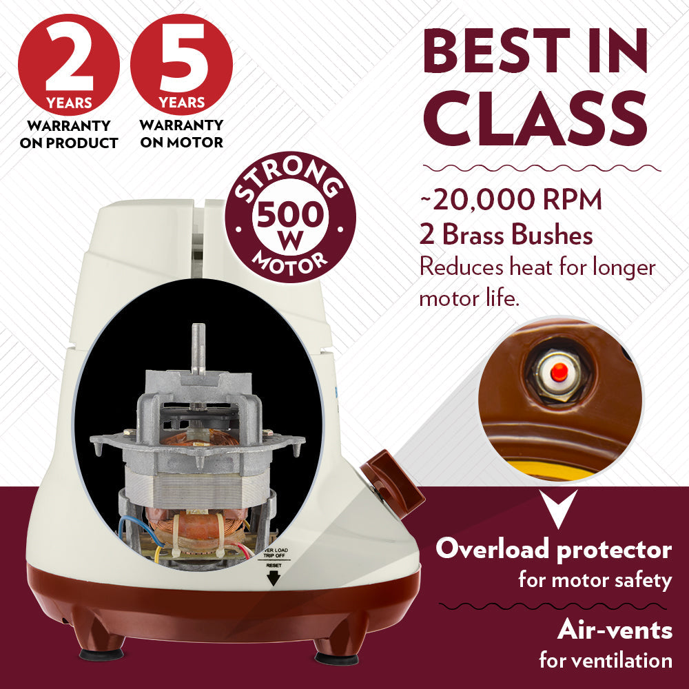 The Borosil Home Star Mixer Grinder 500W has the lowest wattage of our Mixer Grinder series, but it is still extremely powerful. Built with Borosil no compromise quality, it has a durable rotary switch, inbuilt overload protectors, flow breakers in the food grade stainless steel jars for superior performance - ensuring that you will never miss your old mixer grinder!